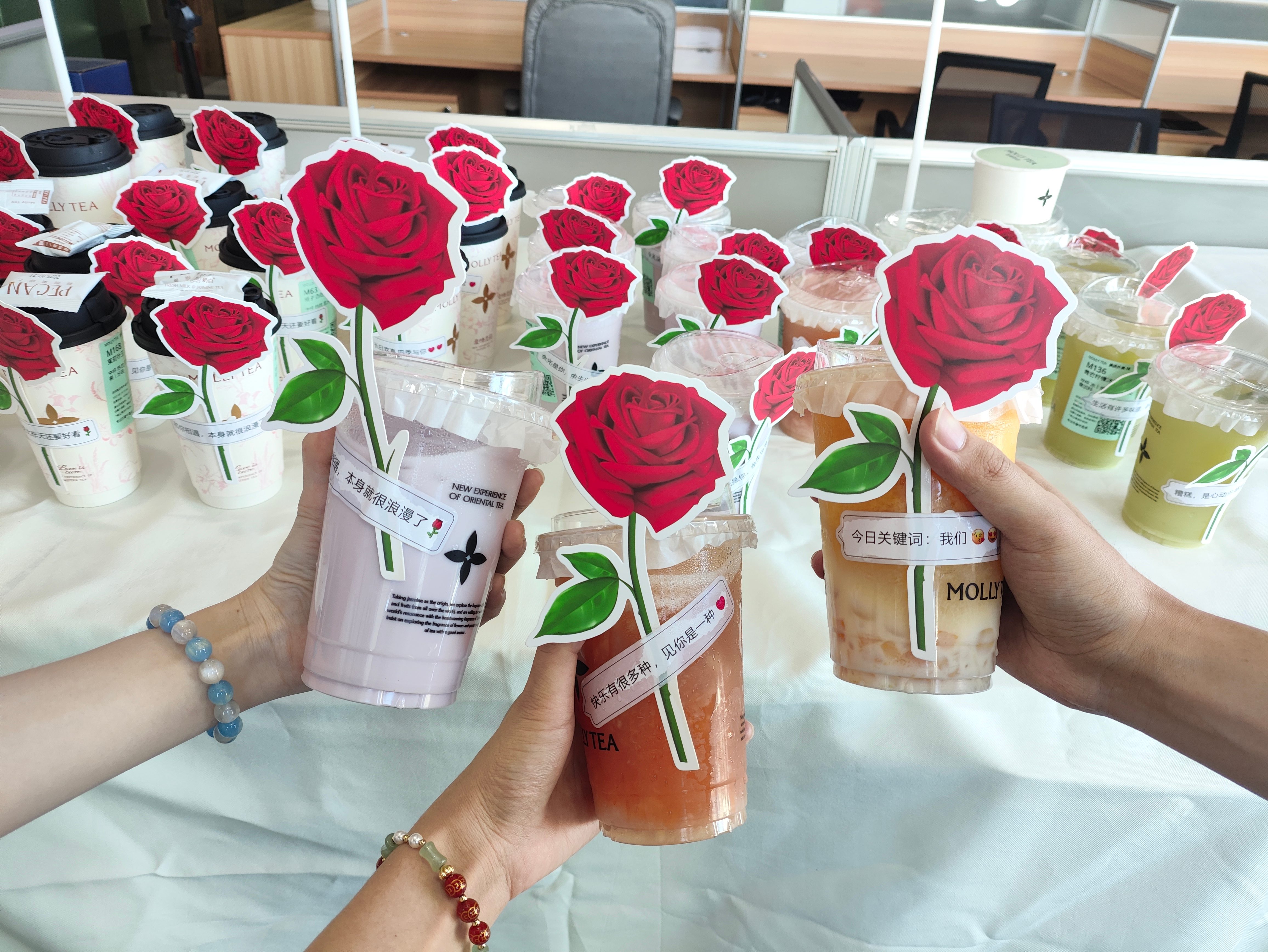 活动间歇,一杯贴有温馨寄语的奶茶,更是为这个午后增添了几分轻松与甜蜜。