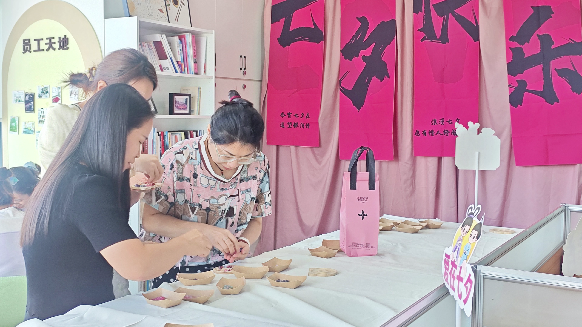 活动伊始,现场便洋溢着温馨与专注的氛围。各式各样晶莹剔透、色彩缤纷的珠饰静静陈列,仿佛每一颗都蕴藏着美好的寓意,等待每一位同事以巧手和心意将其串联成链。这次活动不仅传承了鹊桥相会的浪漫寓意,更旨在传递公司对每一位员工的细致关怀,以及同事之间协作支持、携手共进的伙伴情谊。