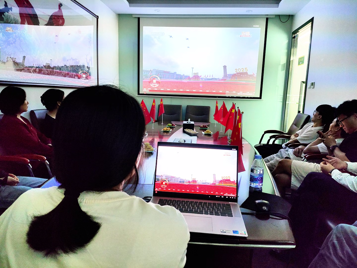 2025年9月3日上午,经纬宏业公司会议室大屏幕上,中央电视台直播信号传来北京天安门广场的盛况——纪念中国人民抗日战争暨世界反法西斯战争胜利80周年阅兵式正式开始了。全体同事注视着屏幕,看着国旗升起,中国人民解放军45个方(梯)队依次通过天安门广场。
