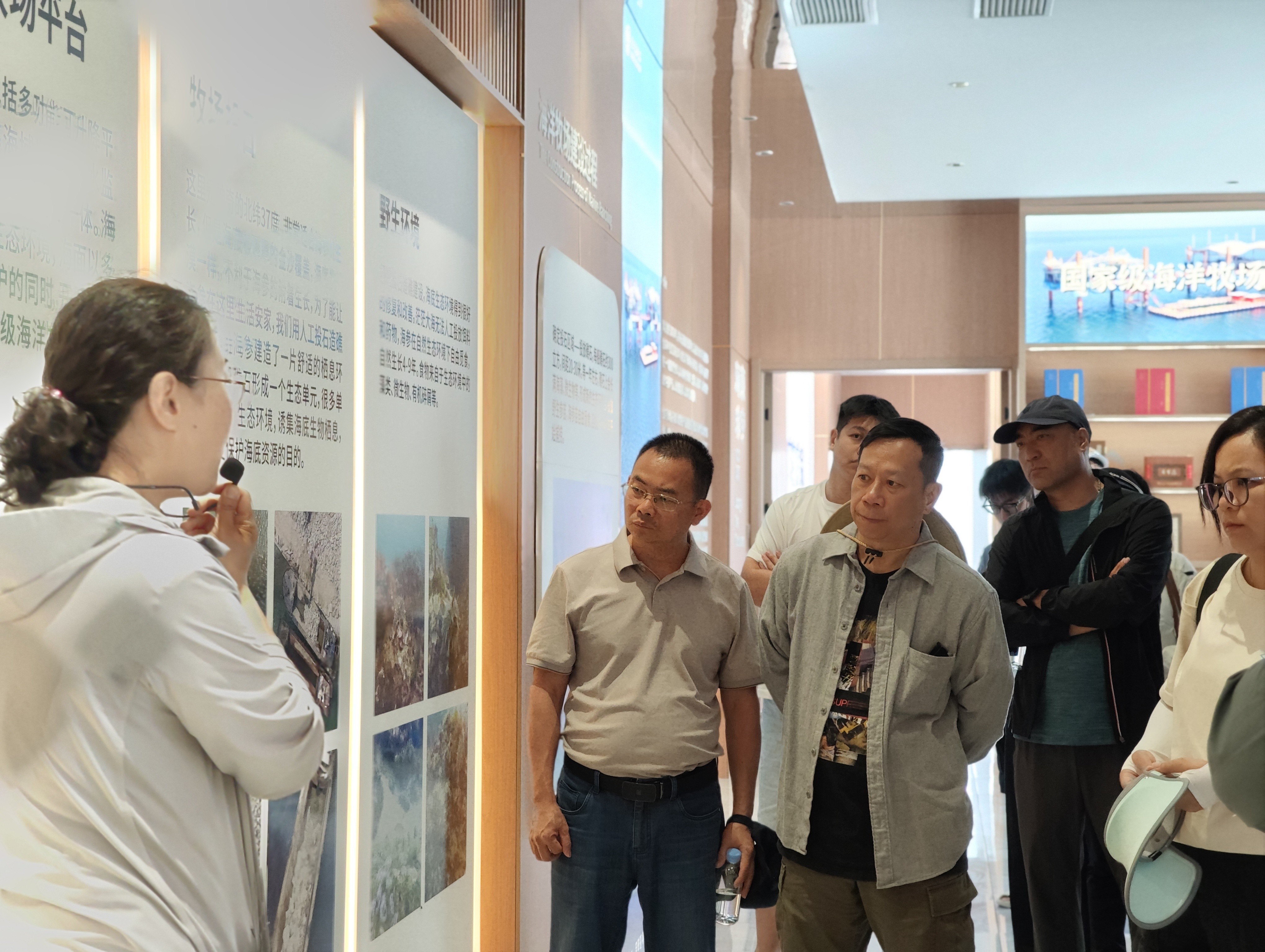 在烟台东宇海珍品有限公司董事长李效平的陪同下,考察团一行登上海上多功能平台,实地观摩该平台在海域监管、海水检测、旅游休闲等方面的复合功能,全面感受“海洋牧场+文旅”融合发展的独特路径。